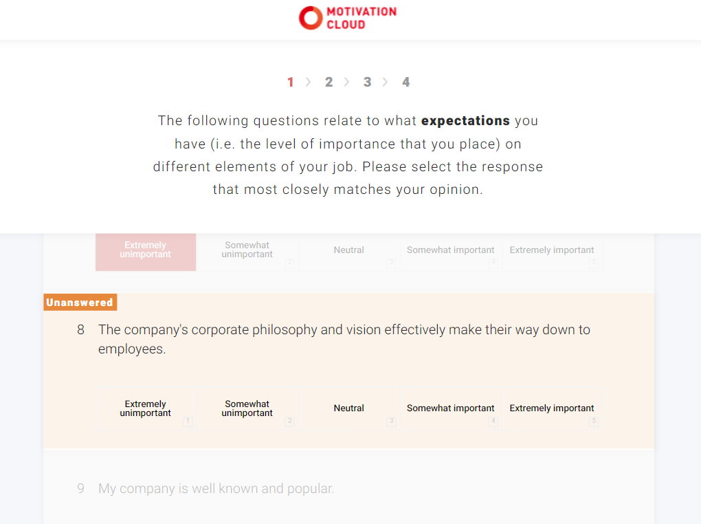 Unanswered questions will be displayed as follows.