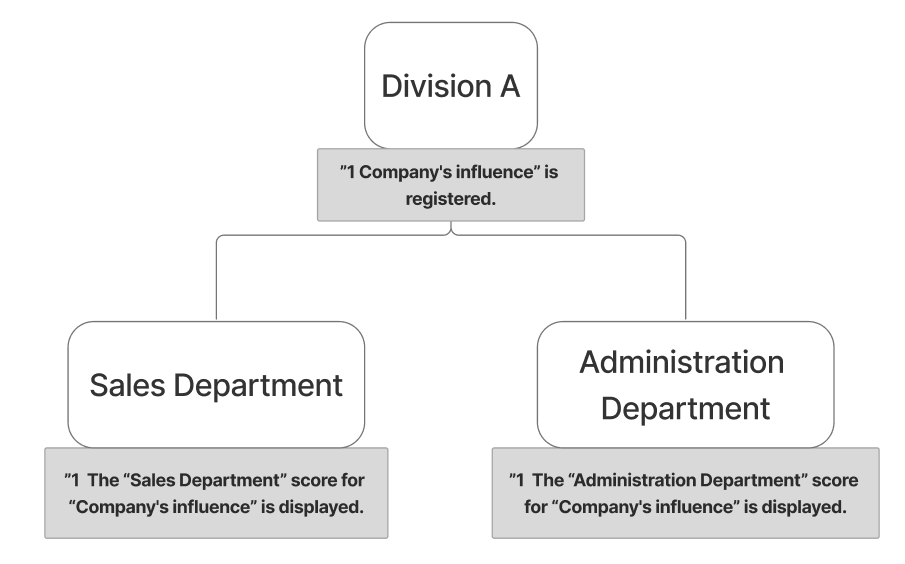 Example: If the improvement item “1. Influence in the Industry” is registered in “Division A,” the results for “1. Influence in the Industry” will also appear on the improvement screens of departments or sections under that division.