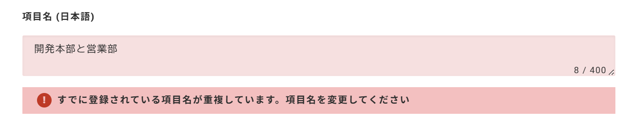 すでに存在する項目名は登録できません。