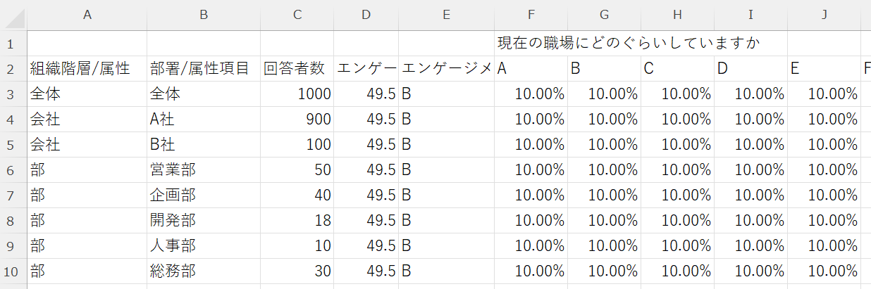 ・部署 / 属性項目が表示されない回答者が下限人数を下回る場合、その回答自体も表示されません。
